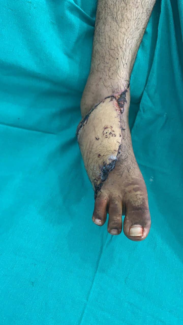 Andy gump deformity is loss of anterior mandibular segment due to trauma ,infection or tumor resection. It is named after a famous cartoon character in USA . Best way to reconstruct is to do a microvascular reconstructive surgery. Osteocutaneous fibula is harvested on peroneal vessel , shaped into desired form and transferred. Microvascular anastomosis is done to local available vessel. Flap is monitored for 5 days .Subsequently patient is discharged . Tracheostomy if done is removed at day 5. At two weeks Fibula with blood vessel vasc...